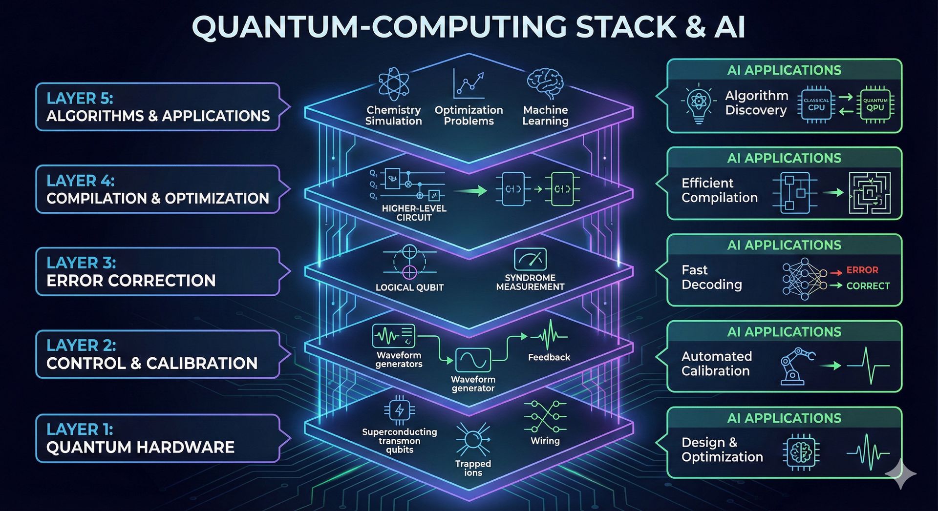 Qubits are notoriously finicky, sensitive to every stray electromagnetic wave and tiny imperfection. Traditionally, engineers manually optimize these complex systems. But according to this NVIDIA-led research, AI is now stepping in, outperforming conventional methods across nearly every layer of the quantum-computing stack. This includes deep-learning models automatically designing superconducting qubit geometries, reinforcement learning agents finding more efficient gate designs, and machine learning helping physicists infer the behaviour of quantum devices from limited data. This means a faster, more reliable path out of the "noisy intermediate-scale quantum" (NISQ) era and towards truly fault-tolerant quantum machines.